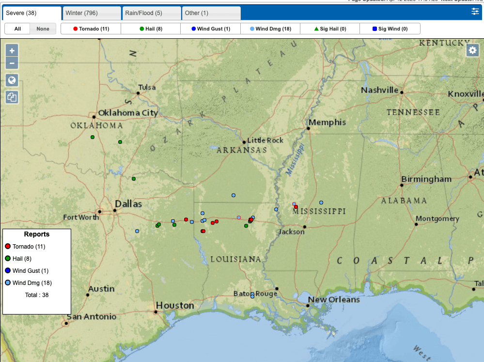 While official tornado reports have been relatively sparse at this time there are several severe thunderstorms with rotation that have developed across the south.