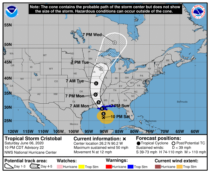 10pm CDT National Hurricane Center Advisory for TS Cristobal