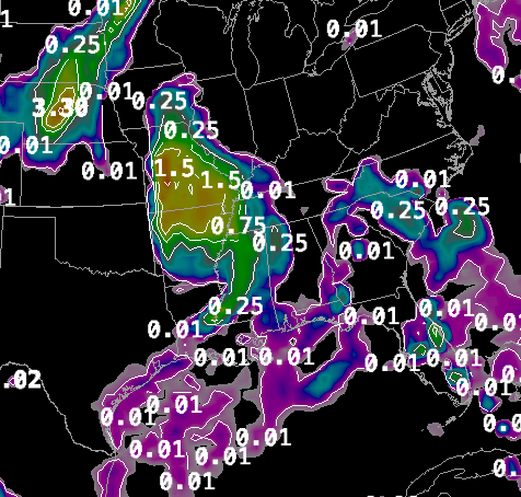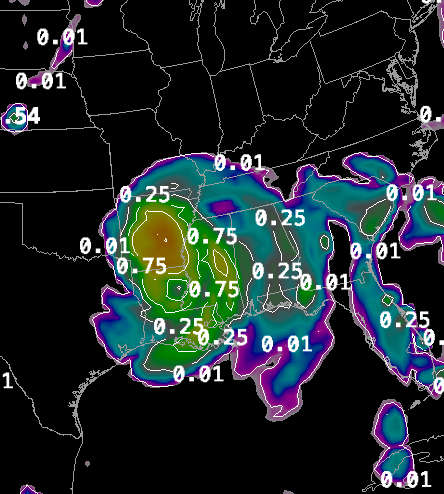 European Model Precipitation Forecast through 8am Tuesday