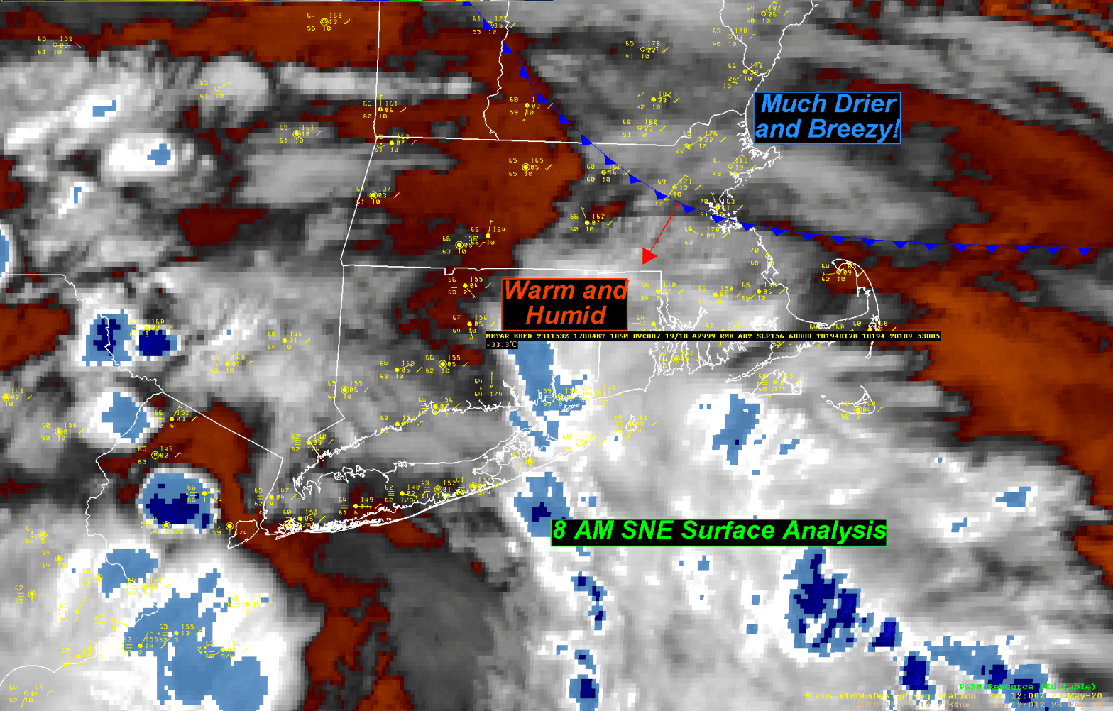It most definitely will change over the next 24 hours. We will start off tomorrow morning pleasant enough with temperatures rising into the low to mid 60’s during the early part of the morning across the state. That warming trend won’t last, unfortunately, as a back door cold front will be pressing southwestward from Maine into the Boston area by 8-10 am. Once that front passes through there will be a noticeable wind shift from the SW to the NE and temperatures will respond accordingly. Temperatures will drop from the mid 60’s into the 50’s by early Saturday afternoon and into the mid to upper 40’s by Saturday night. This cooler air will penetrate throughout all of southern New England.