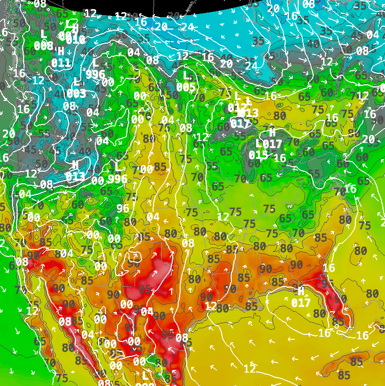 This will allow temperatures to rocket up into the upper 70’s to the lower 80’s in some spots, even near the coast. As you look at Friday’s surface chart above, notice the cold front in southern Quebec and Ontario. This cold front will come at us from the NE during Friday night and push through Eastern MA and RI by Saturday afternoon.