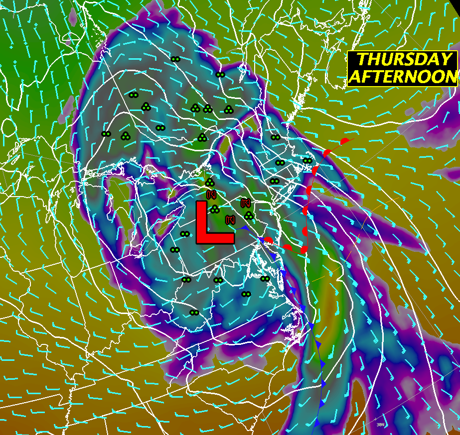 5am Thursday PREDICTED weather map.
